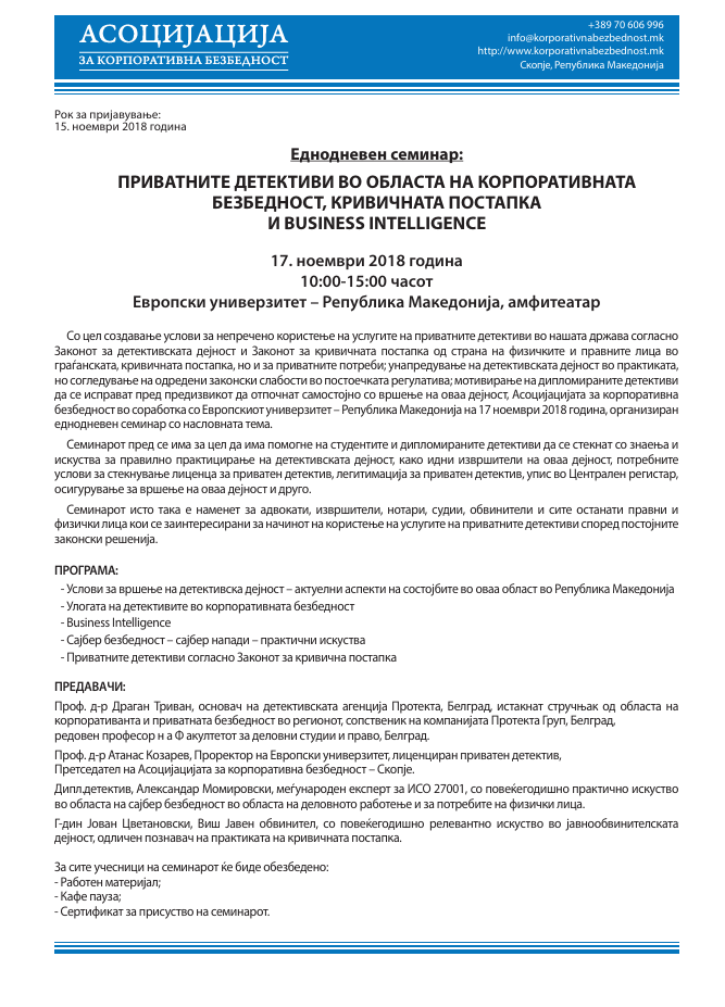 ПРИВАТНИТЕ ДЕТЕКТИВИ ВО ОБЛАСТА НА КОРПОРАТИВНАТА БЕЗБЕДНОСТ, КРИВИЧНАТА ПОСТАПКА И BUSINESS INTELLIGENCE